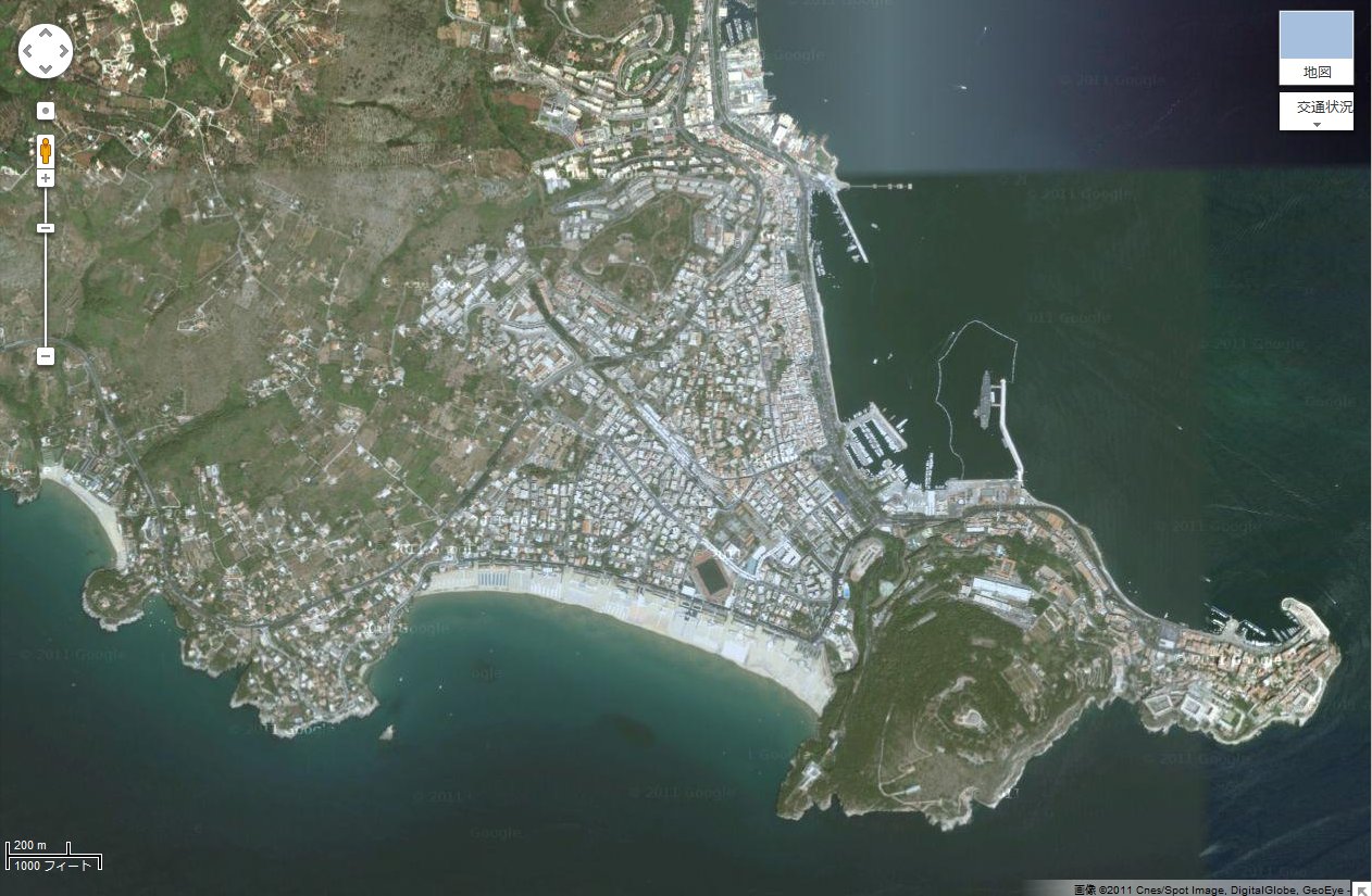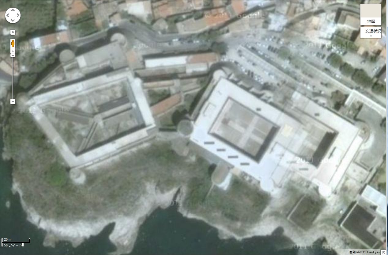 ガエータなんだけど、google の航空写真では、城塞の部分がちょうどつなぎめになっていて、