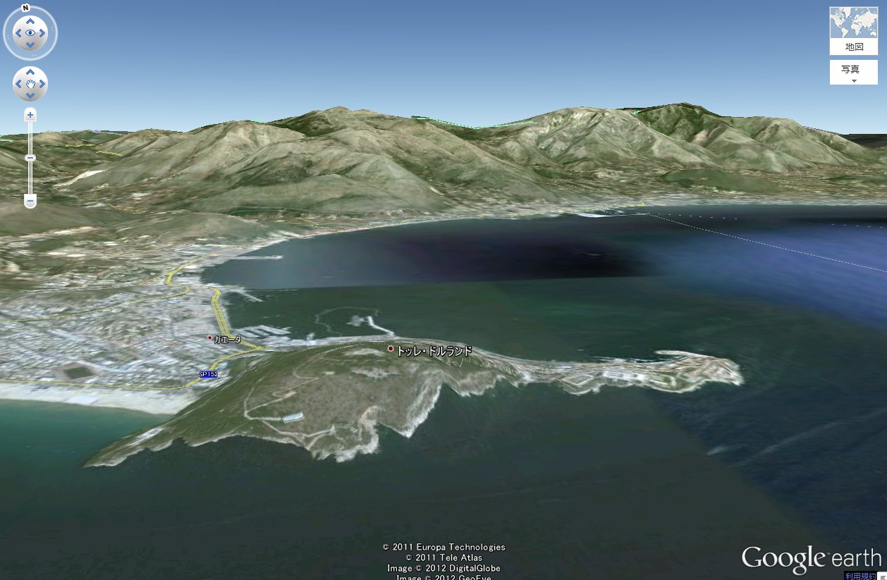 ガエータは全体としては函館のような地形をしていることがわかる。